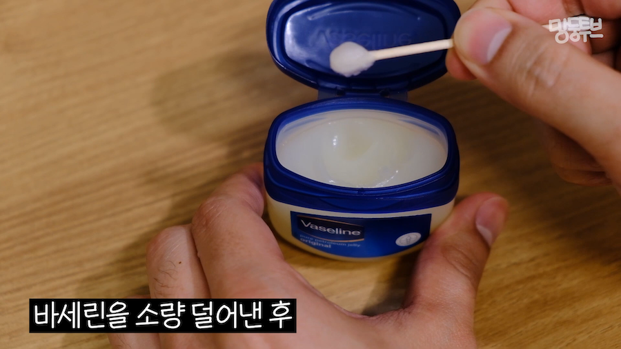 면봉으로 바세린을 소량 덜어낸 후