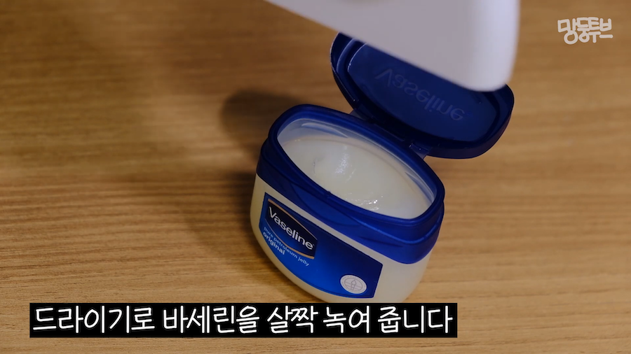 드라이기로 바세린을 살짝 녹여주세요